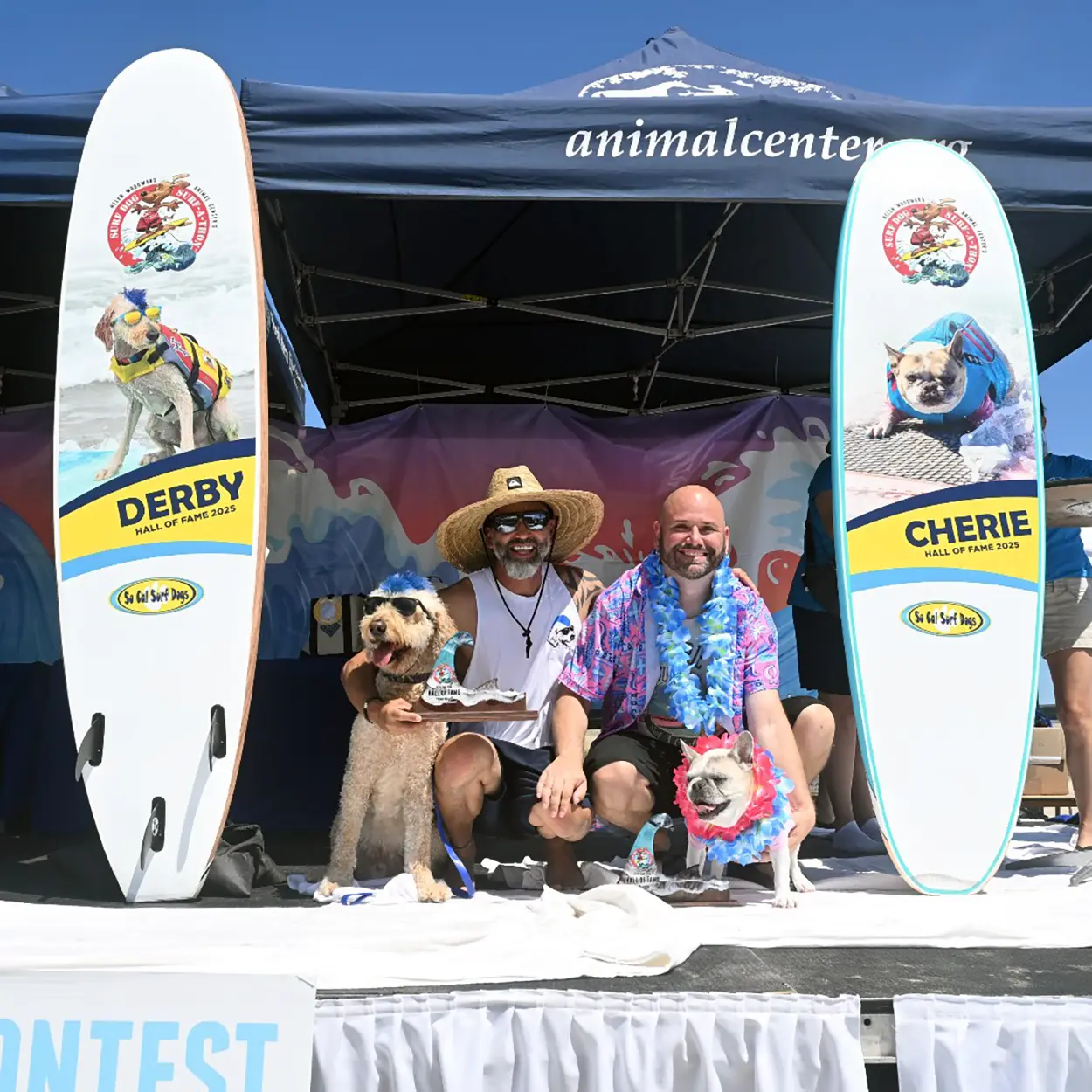 Derby California and Cherie the Surfing Frenchie enter the So Cal Surf Dogs Hall of Fame – Photo Credit: Helen Woodward Animal Center